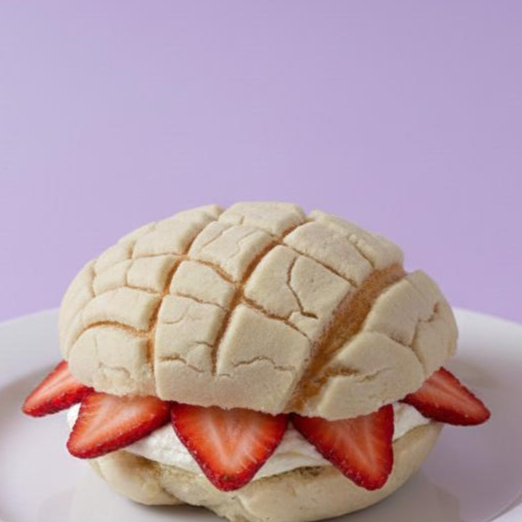 Concha de vainilla rellena de nutella con fresas