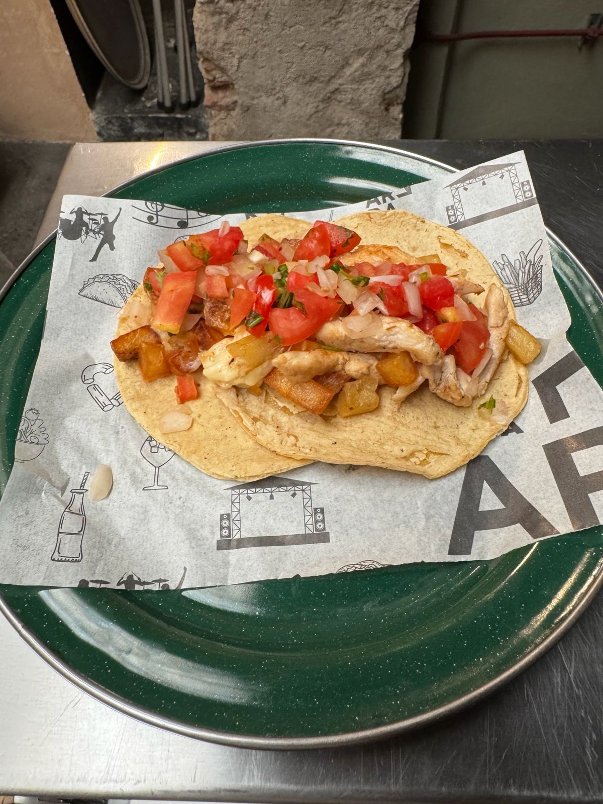 Carré de papas sofritas, queso oaxaca y pico de gallo.