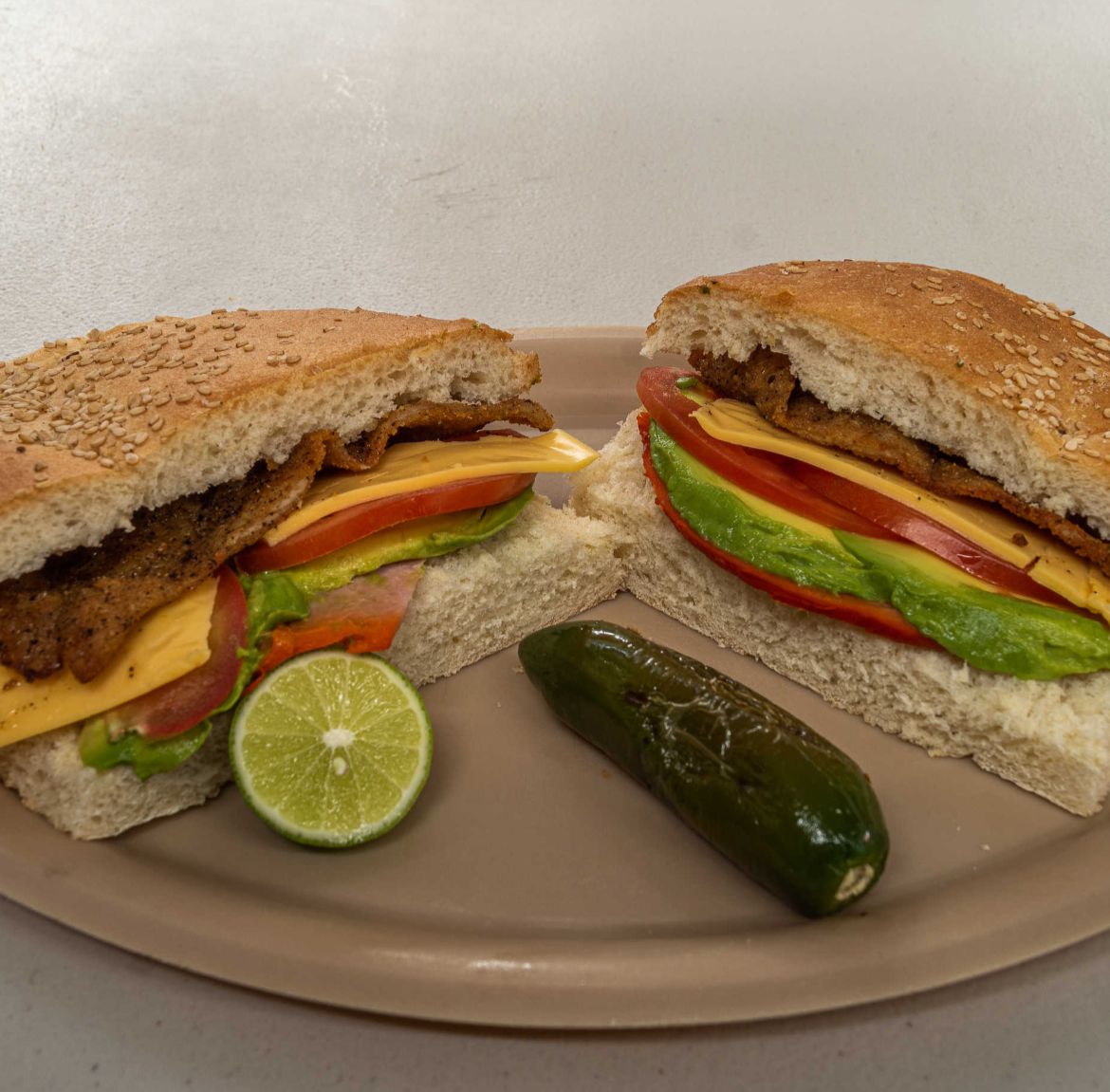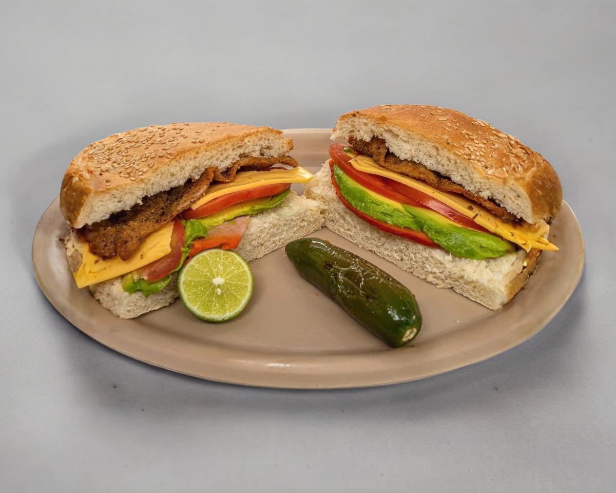 Milanesa🥩jitomate 🍅cebolla🧅aguacate🥑frijoles🫘salsa chipotle.🌶️chiles toreados y limon 🌶️🍋(aparte)