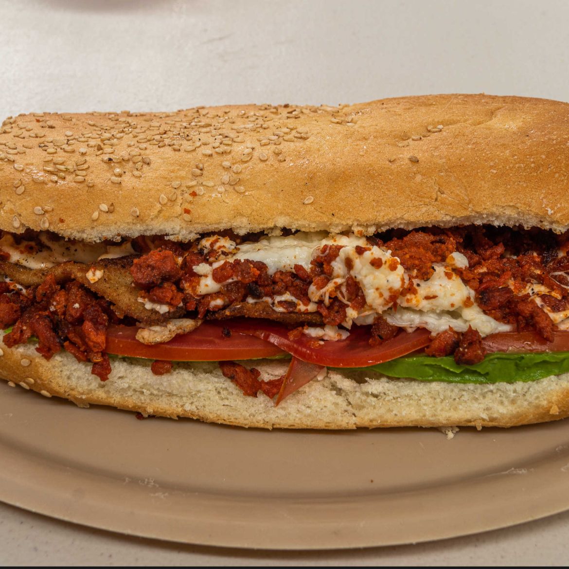 Milanesa🥩pierna🤤queso amarillo🧀oaxaca🧀jitomate 🍅cebolla🧅aguacate🥑frijoles🫘salsa chipotle.🌶️chiles toreados y limon 🌶️🍋(aparte)