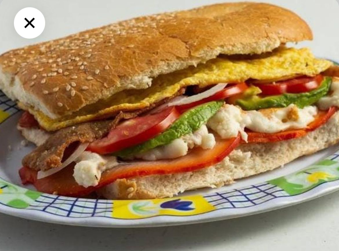 jamon🫓jitomate 🍅cebolla🧅aguacate🥑frijoles🫘salsa chipotle.🌶️chiles toreados y limon 🌶️🍋(aparte)