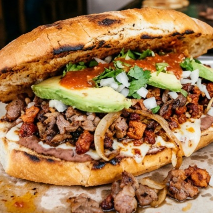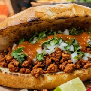 Pan, Carne de res, queso oaxaca y salsas al gusto