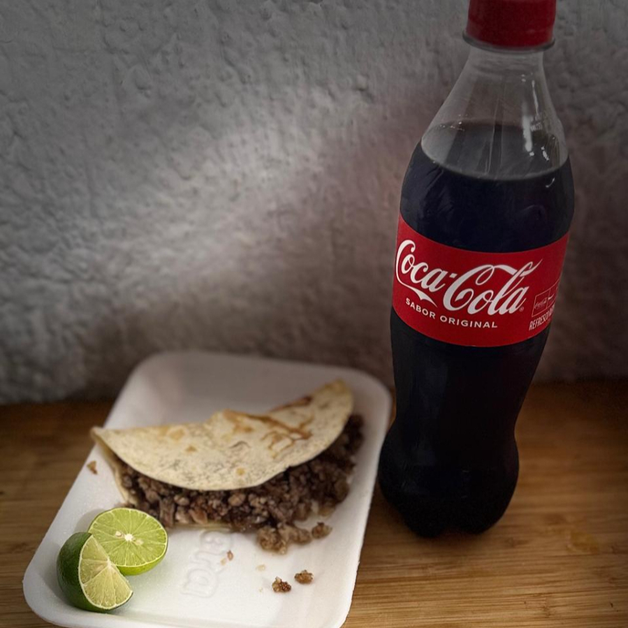1 kio de carne de cerdo al pastor, tortillas, verduras, 2 quesadillas, salsa al gusto y un refresco de 2 litros