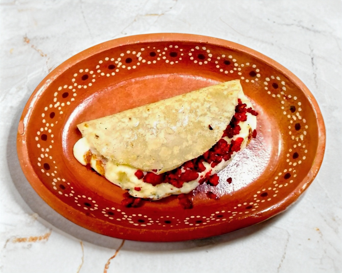 Tortilla de Maíz con Queso Oaxaca y Chorizo