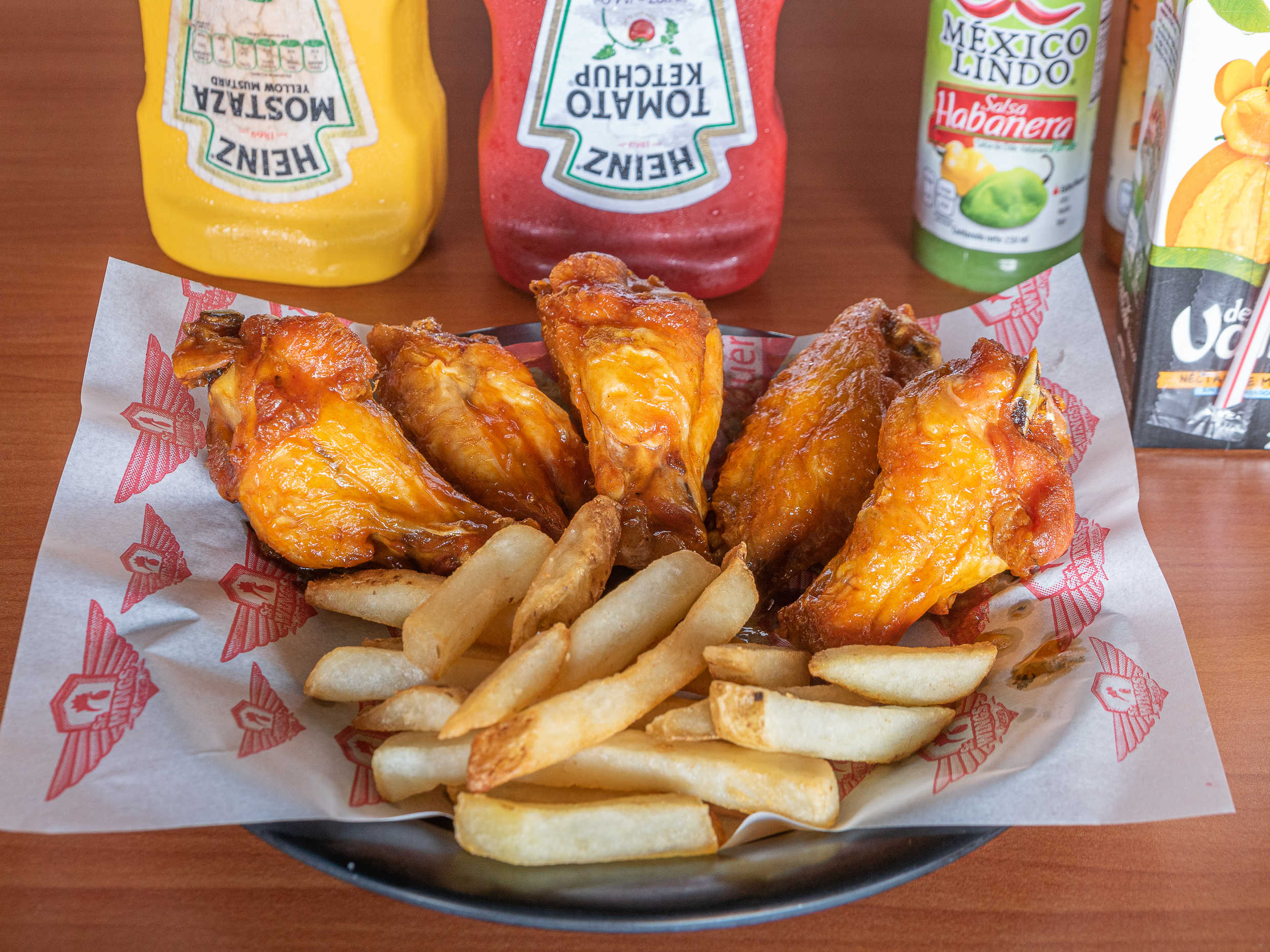 ALITAS (5 PIEZAS), PAPAS Y JUGO TETRAPACK JUMEX(200ML)