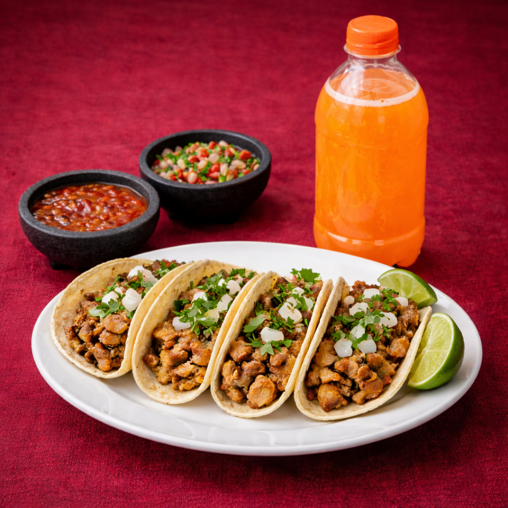 4 Tacos de Carnitas + 1 Refresco de Sabor