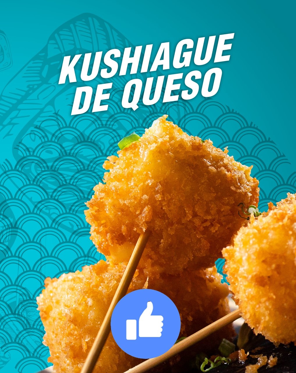 Platillo individual que incluye 3 piezas de brochetas de queso manchego, empanizadas con panko y fritas, acompañadas por separado de salsa tonkatsup. 🧀🍢