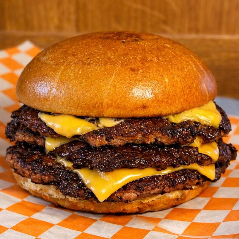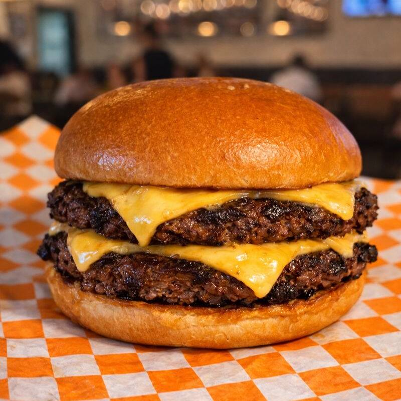 Doble smash 200 g, queso americano fundido, pan brioche.