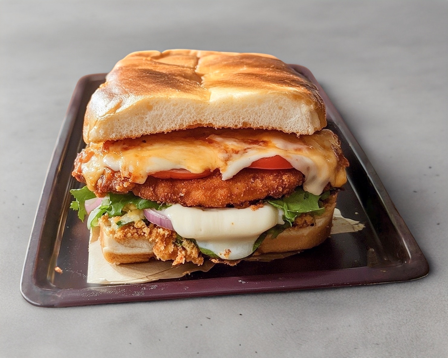 TROZO DE PECHUGA DE POLLO EMPANIZADA Y BAÑADA CON TU SALSA FAVORITA (300 grs)