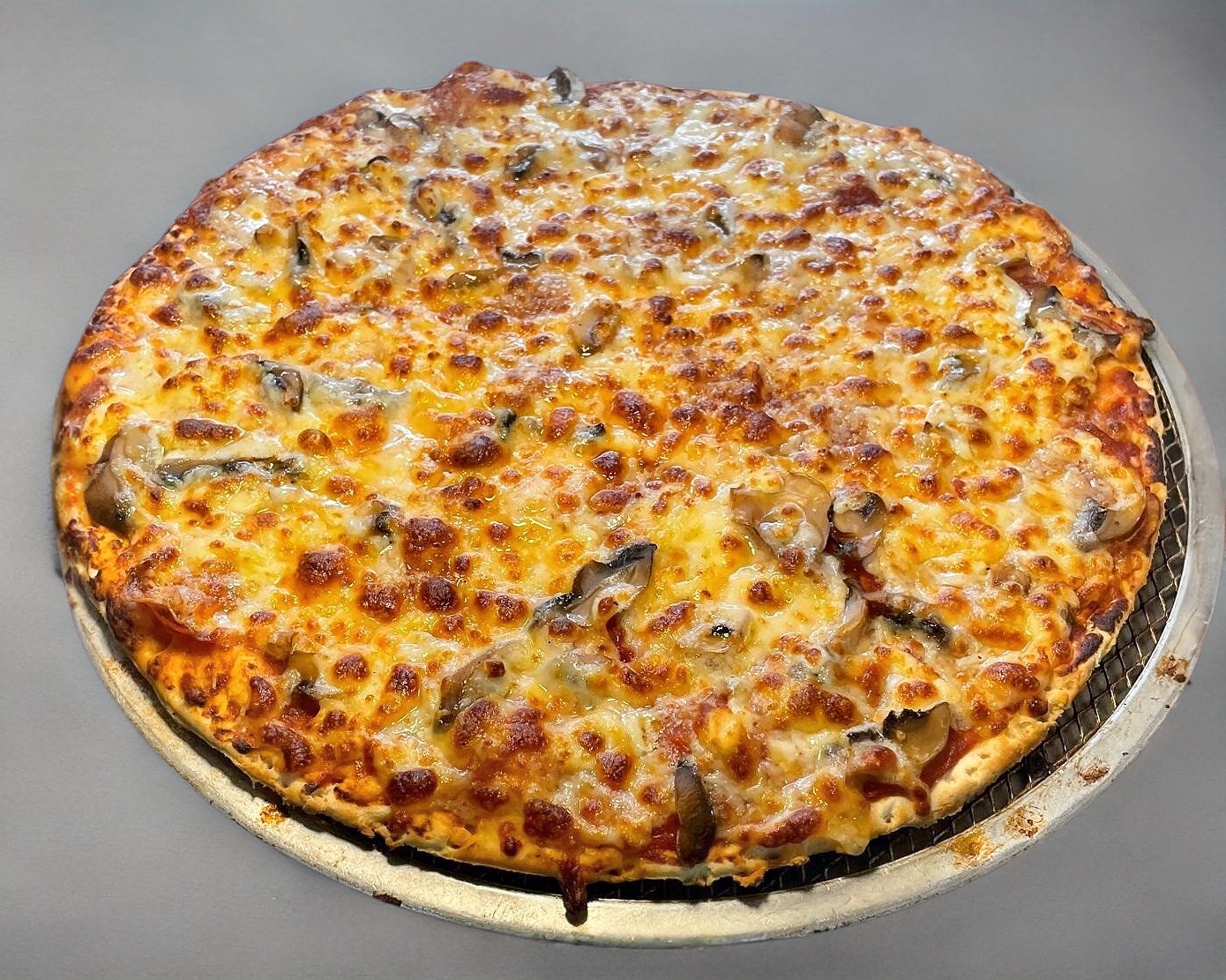 Con un toque de queso parmesano ¡Deliciosa! Jitomate, Champiñon y especias (oregano) acompañada de tu salsa base favorita. Pizza de 36 cms de diámetro con 8 rebanadas
