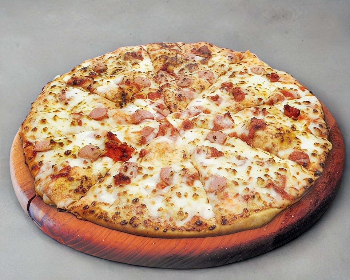 Jamón, salchicha, y champiñones. Pizza de 36 cms de diámetro con 8 rebanadas