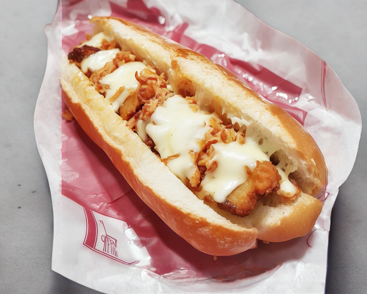 Delicioso bollo relleno de pehuga de pollo en trocitos queso tocino con finas hierbas Se envia calientito Delicioso ¡¡
