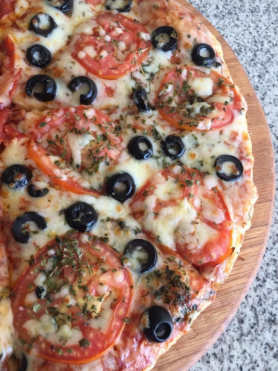Jamón, champiñón y aguacate. Pizza de 36 cms de diámetro con 8 rebanadas