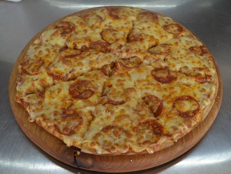 Peperoni y champiñón. Pizza de 36 cms de diámetro con 8 rebanadas