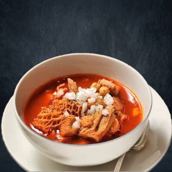 Pancita de res acompañado de cebolla, limones, orégano y chile de árbol.