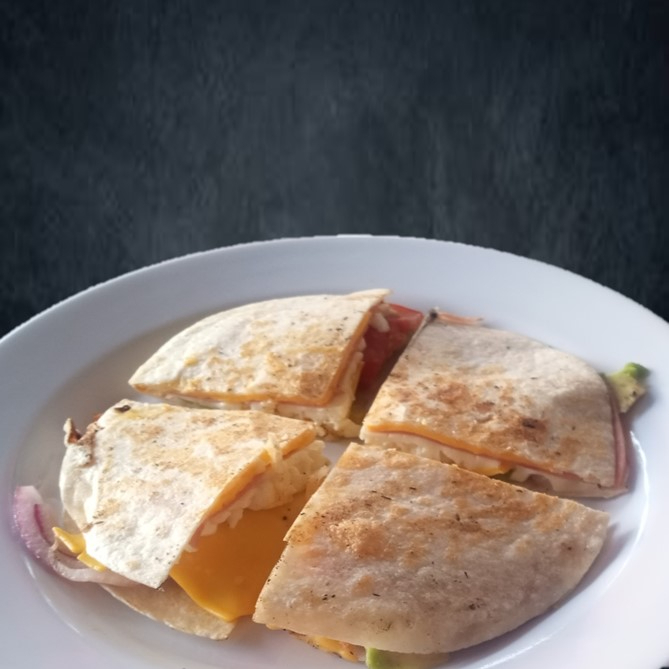 Jamón, queso amarillo, queso oaxaca, jitomate, cebolla, aguacate y salsa aparte