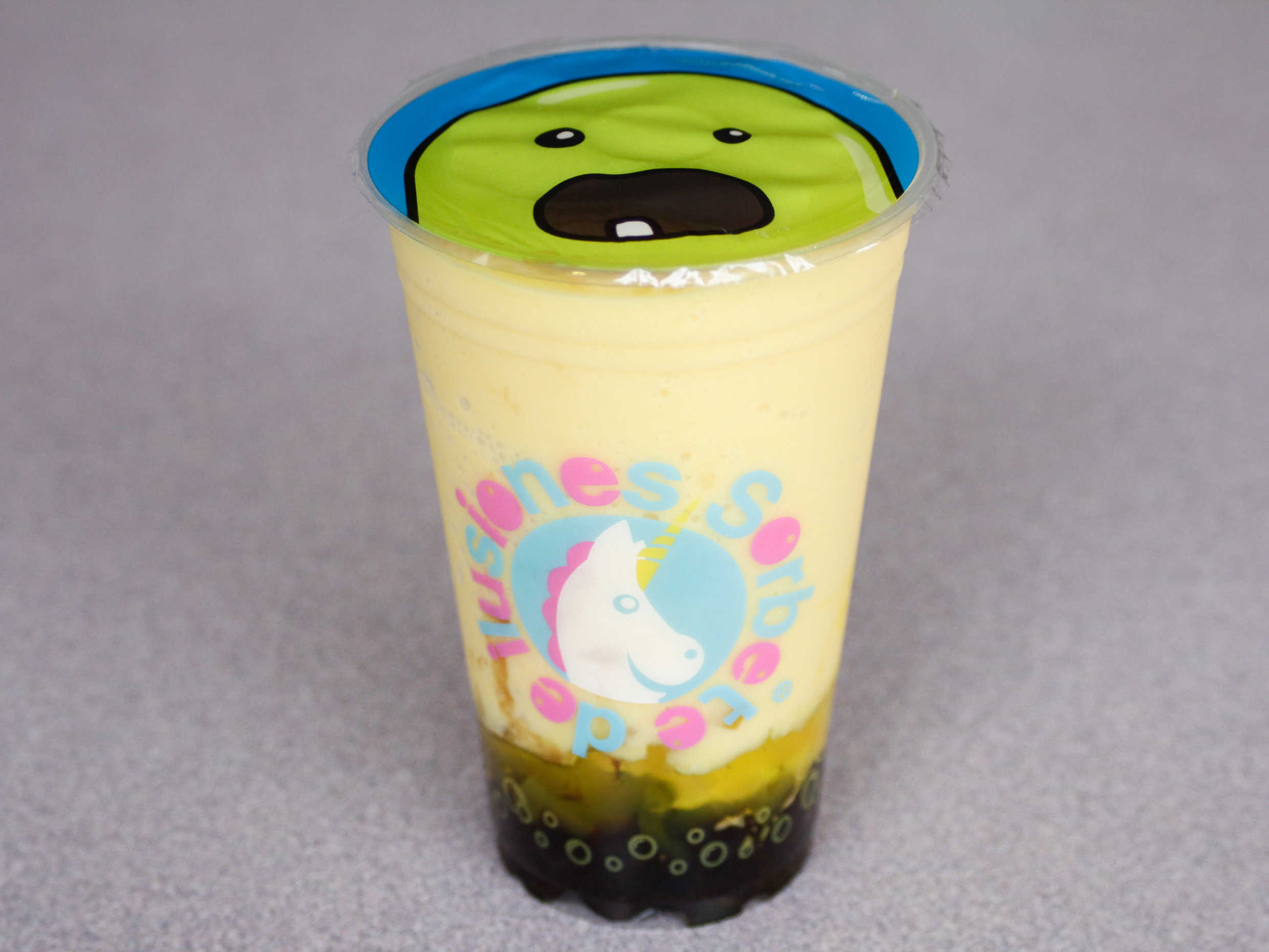 Jugo naranja,piña,helado limon,jarabe mango