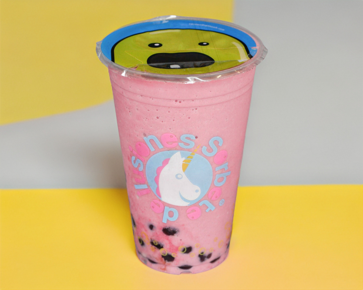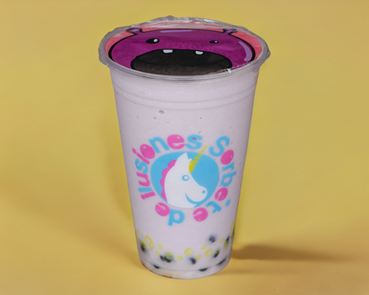 Taro y jarabe de fresa