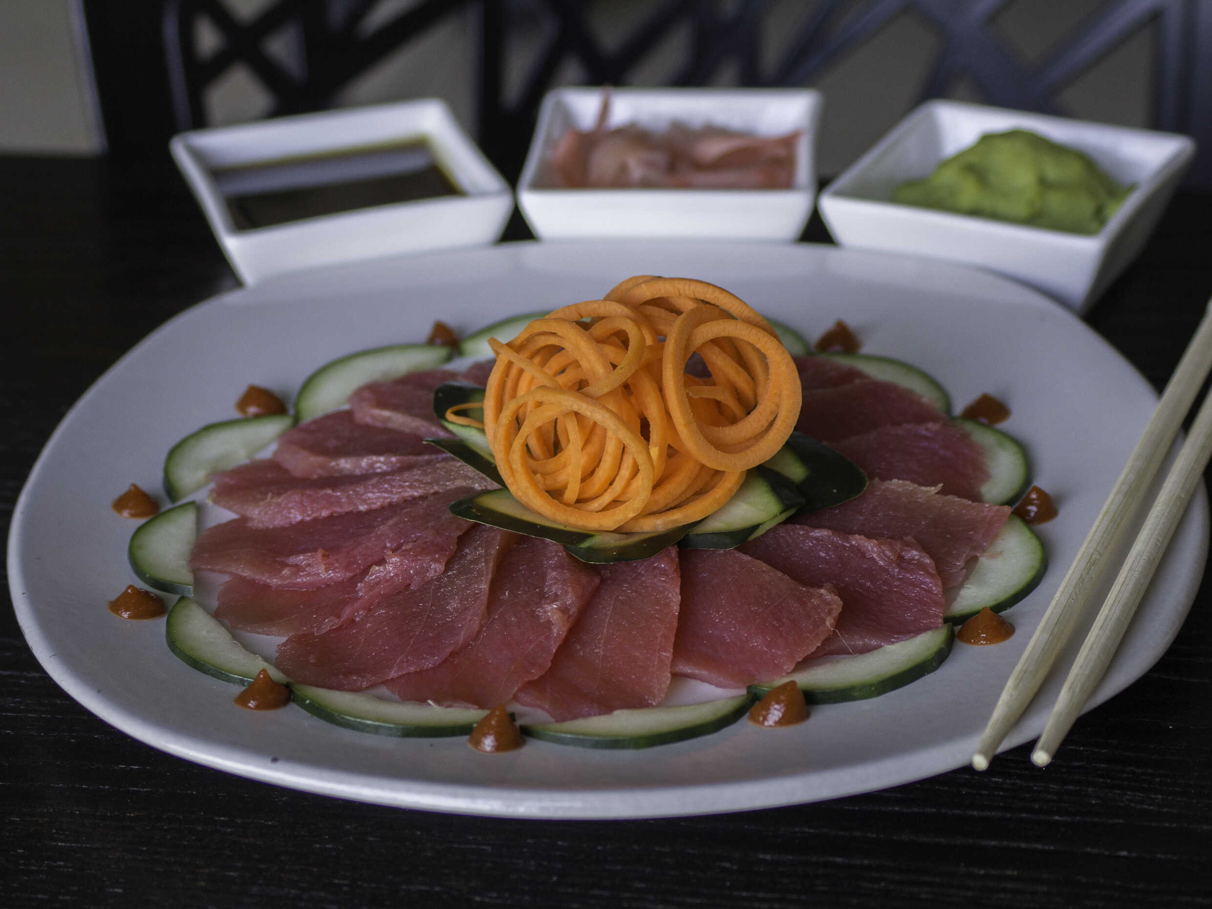Kakiague de betabel y zanahoria, queso Philadelphia atún aguacate salsa tampico.