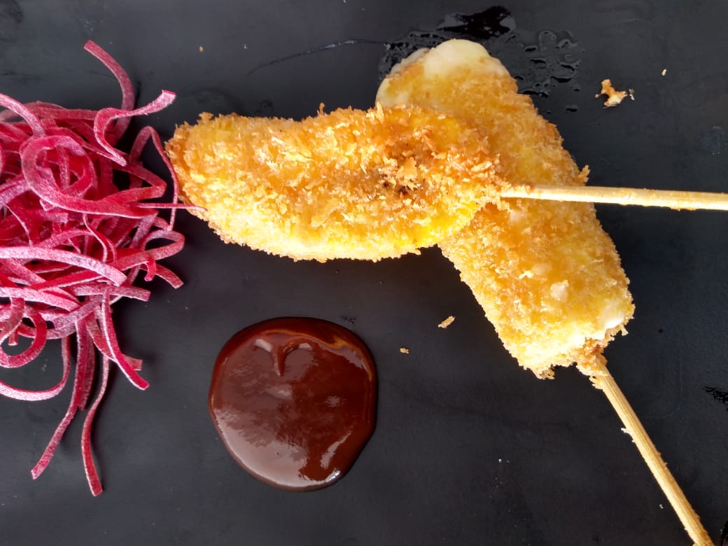Empanizado, queso Philadelphia queso gouda, zanahoria, pollo empanizado, salsa chipotle.
