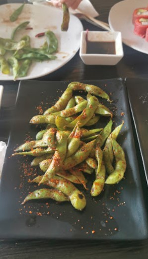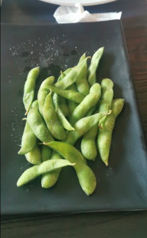 Frijol de soya a la plancha, salsa ponen, tajín y limón.