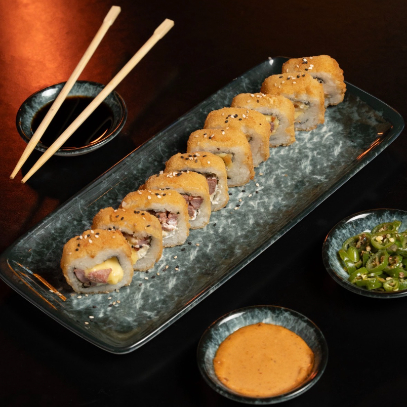 300 gr. de arroz natural preparado al estilo japonés con res, pollo, queso Philadelpia y ajonjolí.