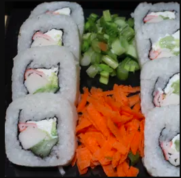 Aguacate, Philadelphia, Surimi, Camarón, Chile Toreado y Cebollin por dentro