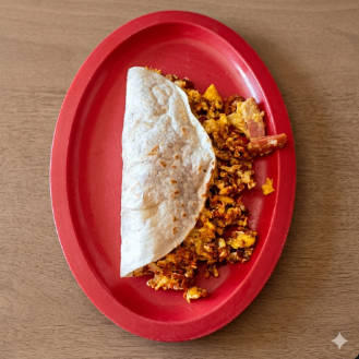 jitomate cebolla aguacate y salsa chipotle. tortilla de 12 onzas