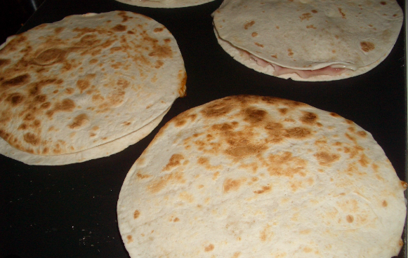 2 Tortillas de harina grandes, lleva pierna, queso oaxaca, jitomate, aguacate, cebolla y salsa chipotle.