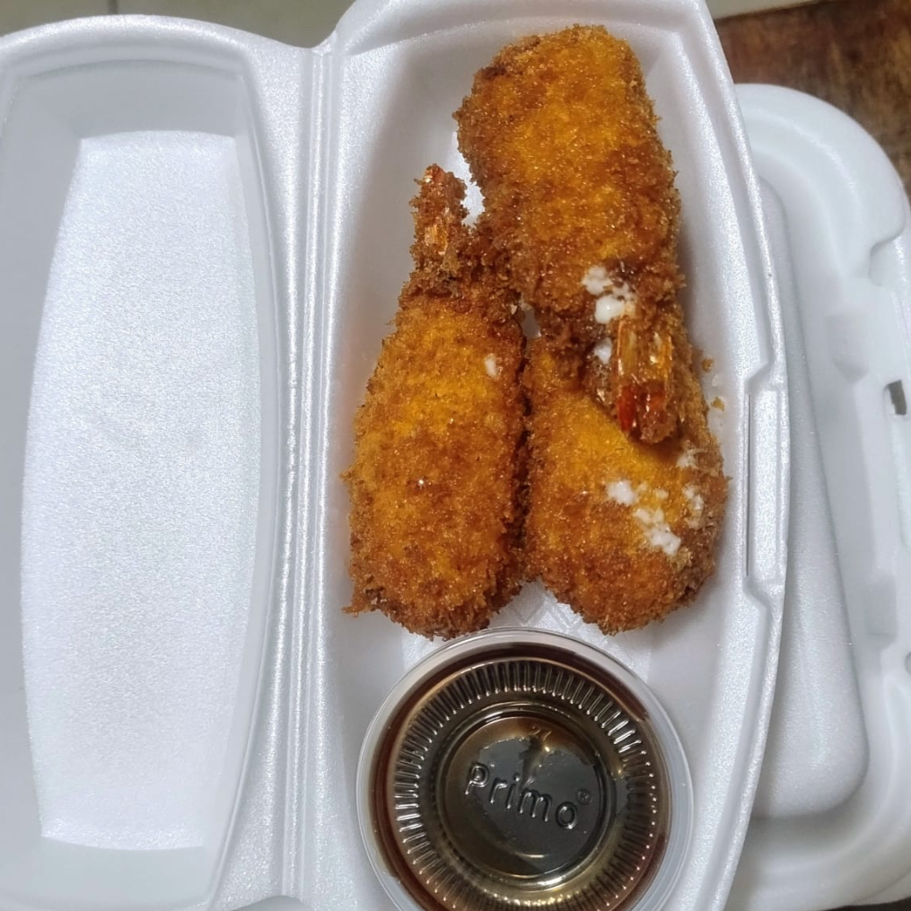 CAMARONES EMPANIZADOS RELLENOS CON QUESO CREMA PHILADELPHIA.
