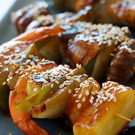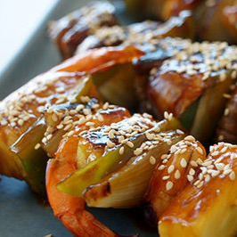 Deliciosas brochetas a la plancha bañadas en salsa teriyaki