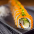 Por fuera Nori Capeado, Queso Oaxaca, Massago y Chipotle, por dentro Atún Ahumado, Philadelphia, Zanahoria, Pepino y Aguacate.