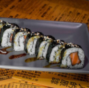 Por fuera Hoja de Pepino, Tampico y Camarón Empanizado, por dentro Queso Philadelphia, Pepino, Zanahoria, Aguacate y Cangrejo.