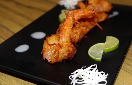 Camarones fritos a 180 grados, bañados con salsa especial de la casa.