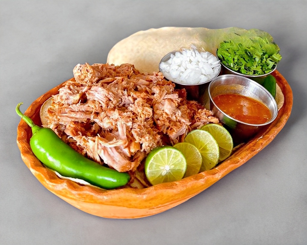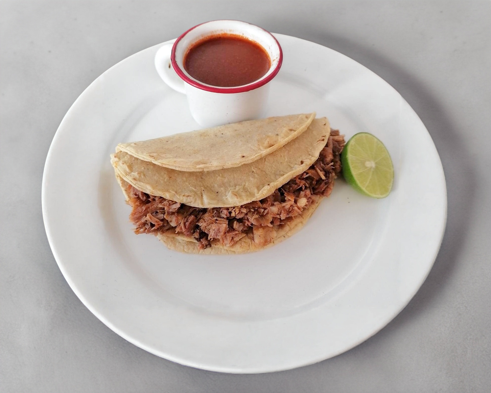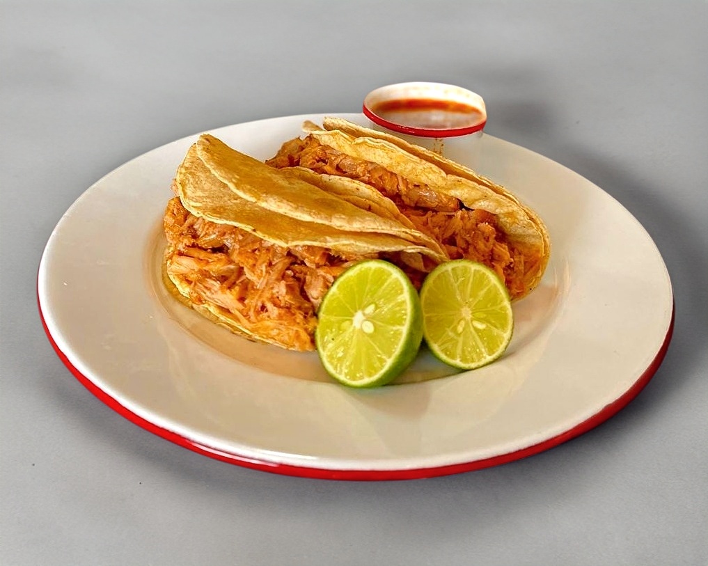 Doble tortilla, chamorro y queso oaxaca.