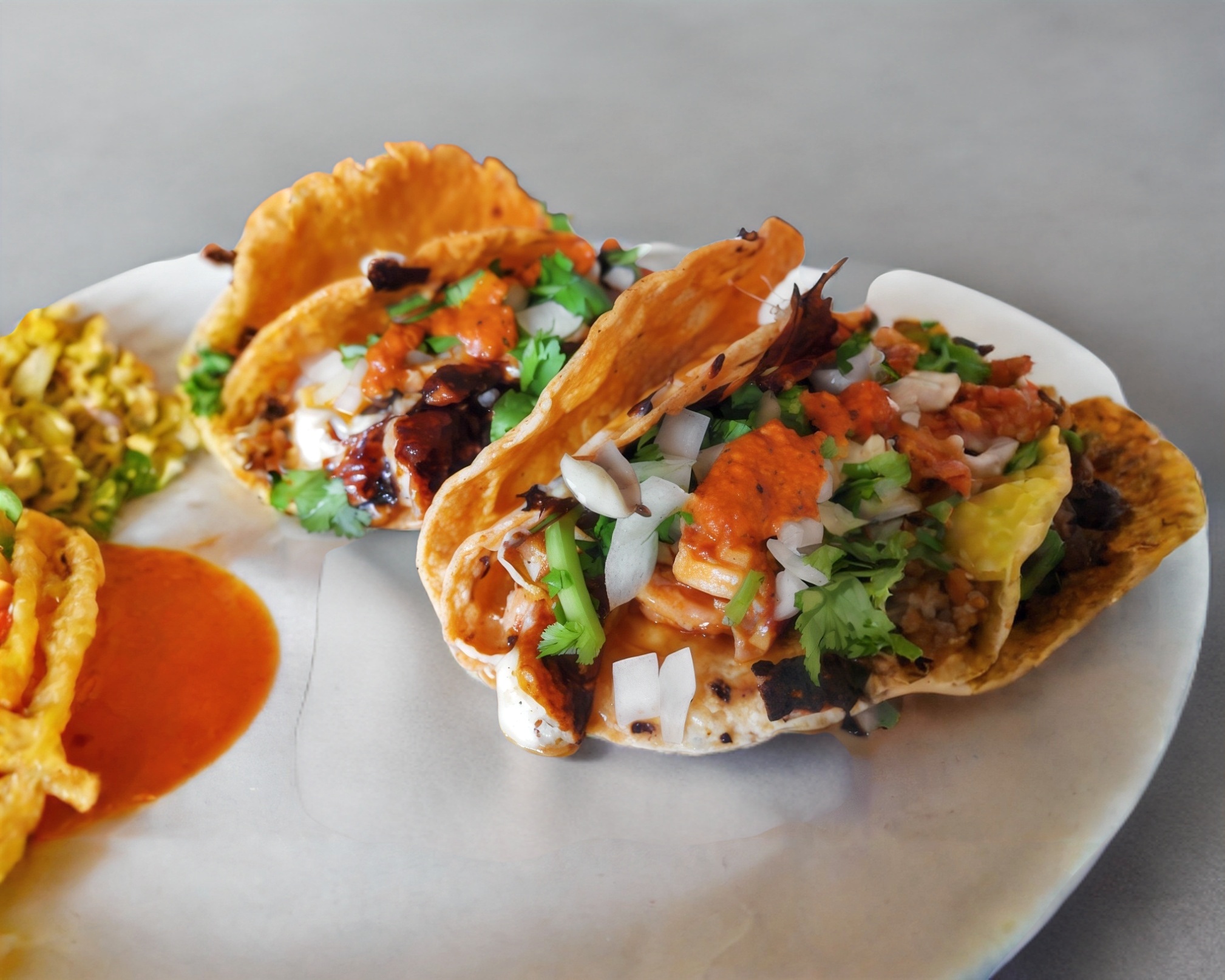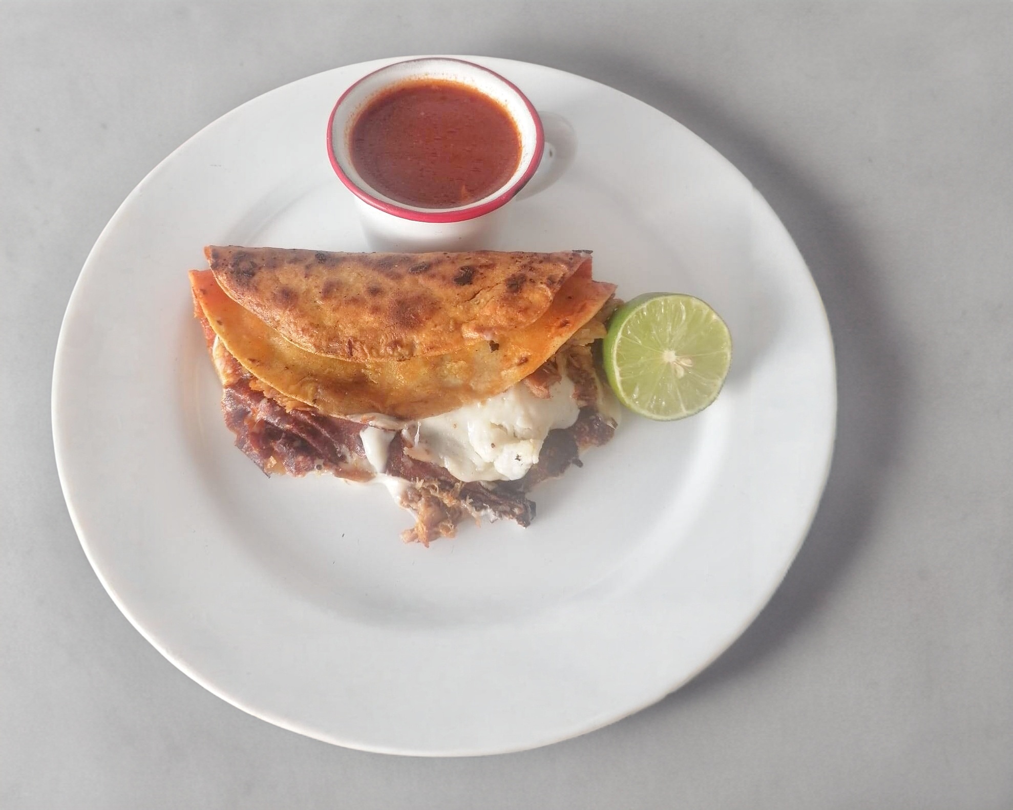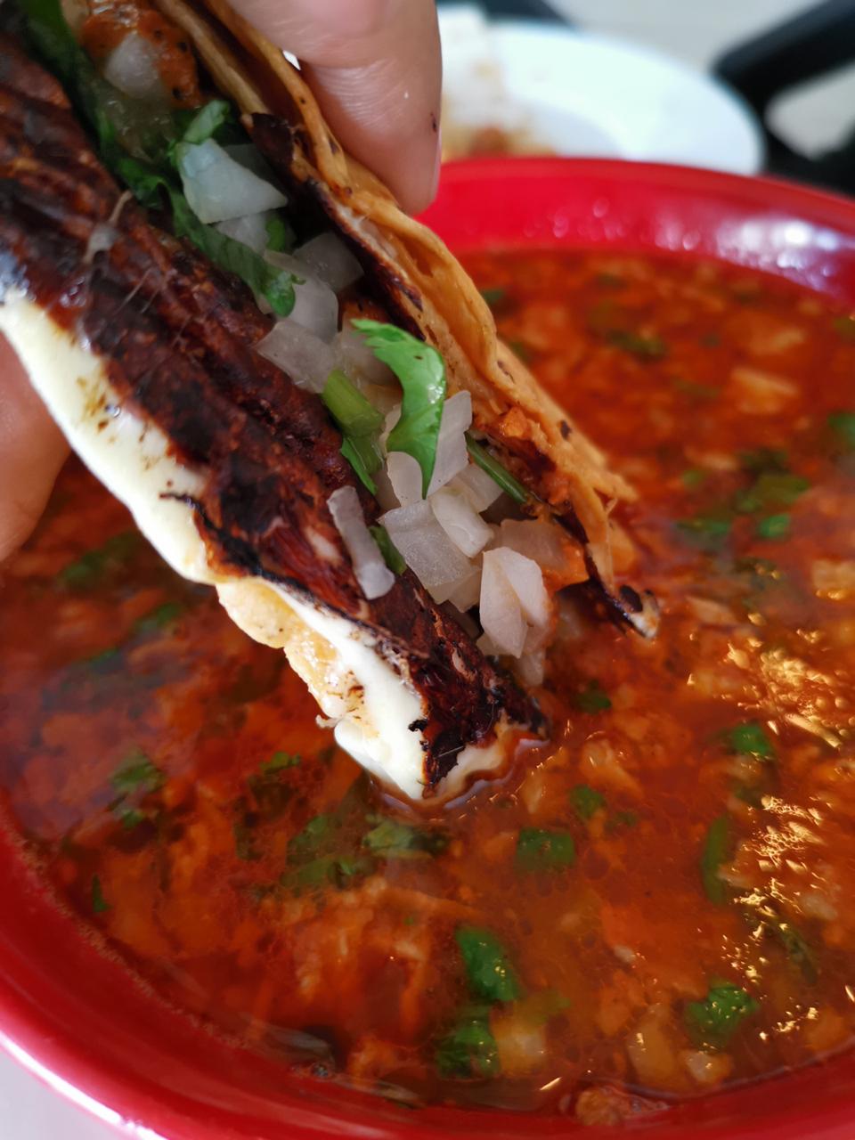 Doble tortilla con birria, chamorro.