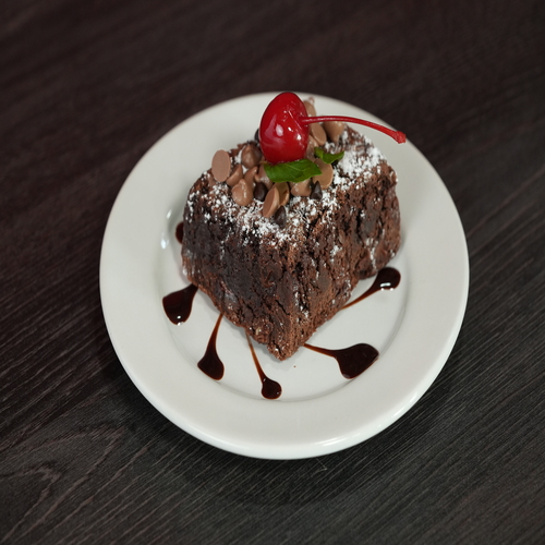 Delicioso brownie de chocolate con una textura húmeda y un sabor irresistible.