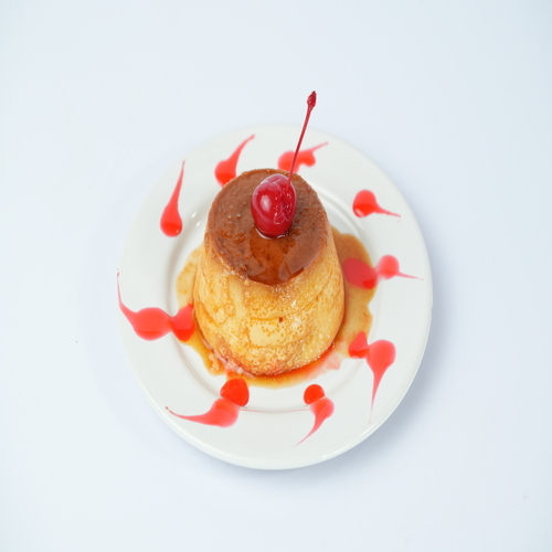 Clásico flan de vainilla con una textura suave y un caramelo perfecto.