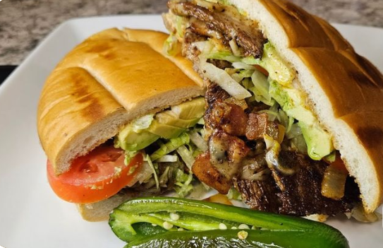 Deliciosa torta de longaniza en telera de tamaño normal.