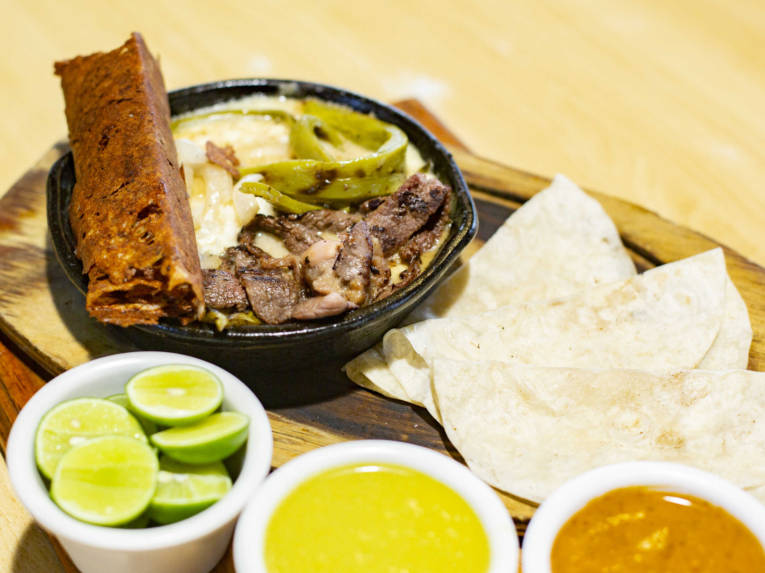 Queso fundido con Bistec de res