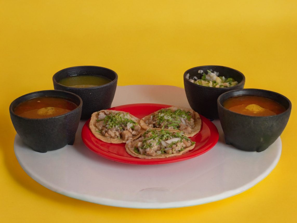 Pastor, Cebolla, Nopal, Salsa, Tortillas de Maíz