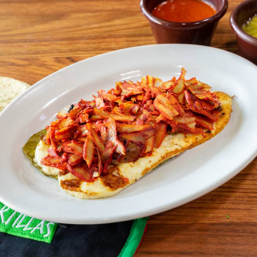 Queso fundido acompañado de tu proteína favorita, incluyen 4 tortillas de harina.