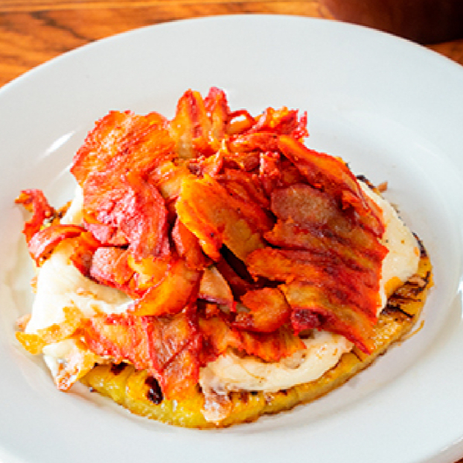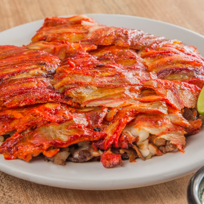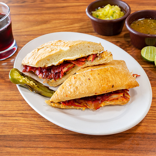 Pan chapata con textura crujiente, por dentro lleva queso, proteína y aderezo de chipotle.