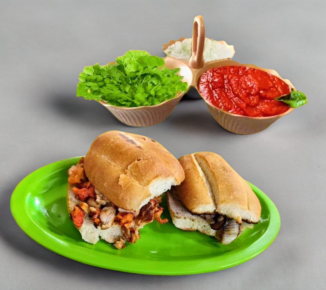 Morrón, cebolla, chuleta, queso (con tortillas).