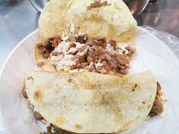 Suadero, queso, papa peladito y mantequilla acompañado con tortilla de maíz.