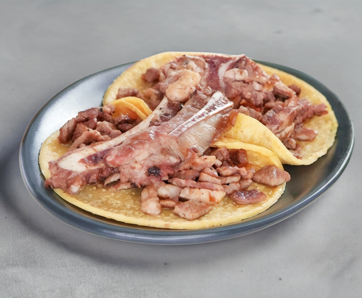 Tacos de costilla, acompañado con un huesito.