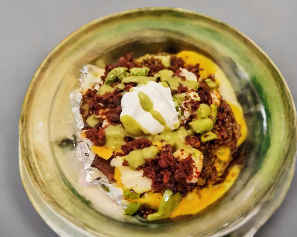 Costilla de res con queso cebolla, jitomate aguacate.