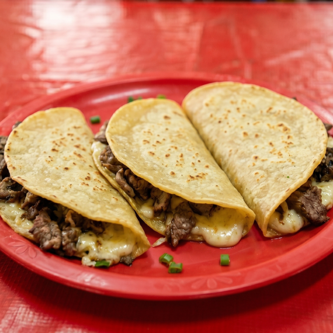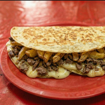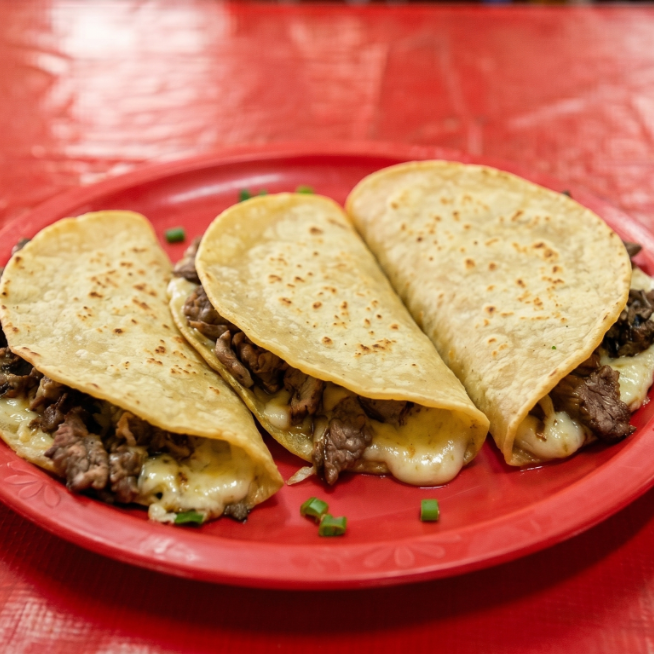 El clásico de clásicos: bistec de res con queso en tortilla de harina suave.