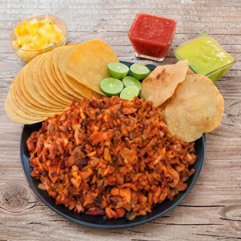 500 grs.de Carne al pastor, incluye verduras, salsas, tortillas y limones.