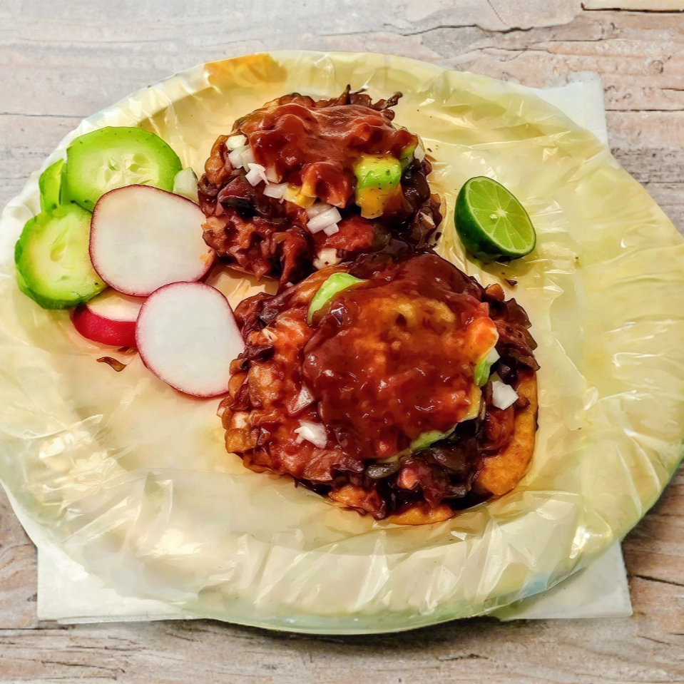 2 Tortillas tostadas con queso y carne de tu elección